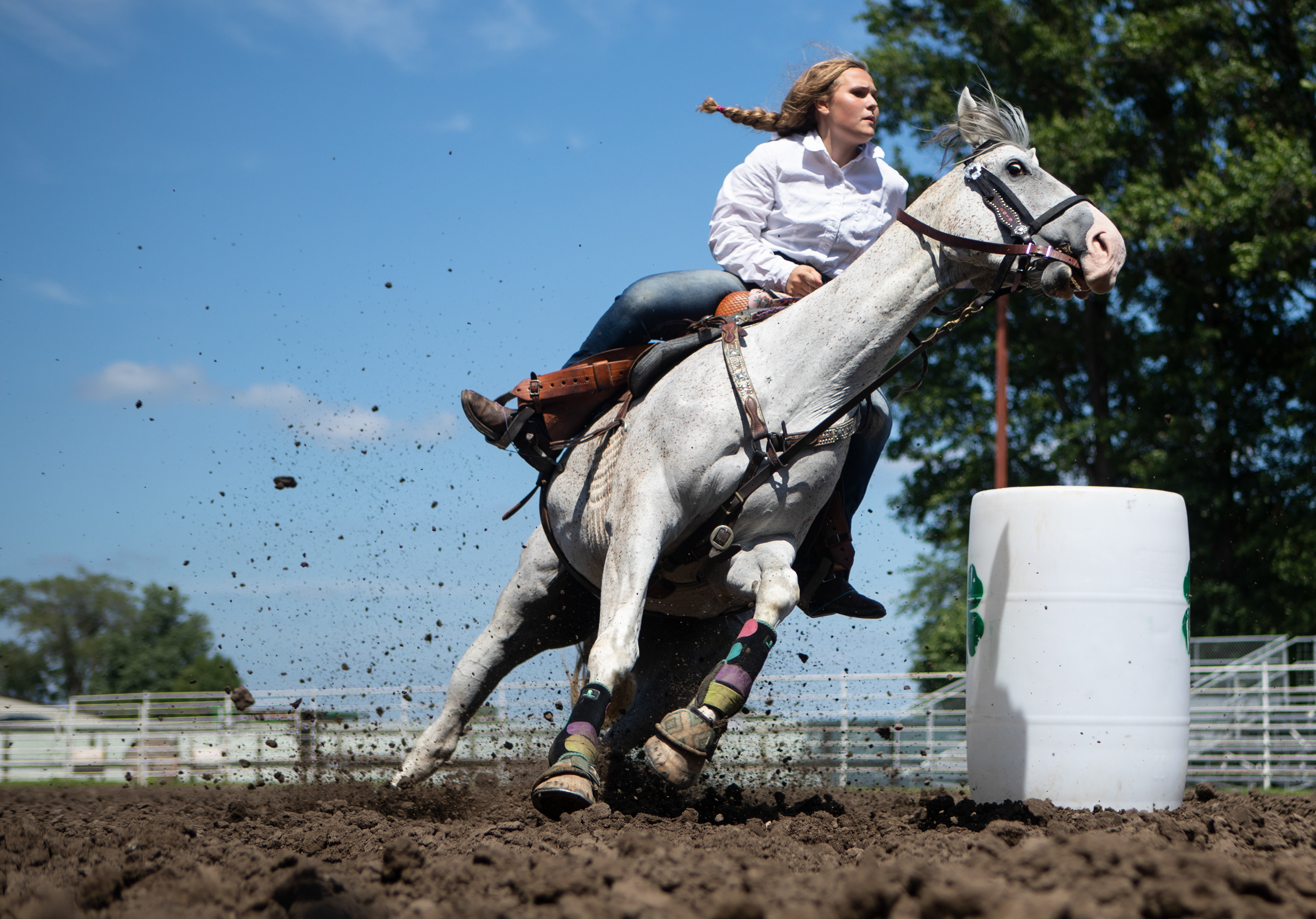Valparaiso’s Mary Andelt steers her horse around barrels during the speed contests at the Saunders County horse show on Tuesday, July 28, 2020, in Wahoo Nebraska. This photo awarded the photographer first place in class A feature photography in the Nebraska Press Association's Better Newspaper contest.