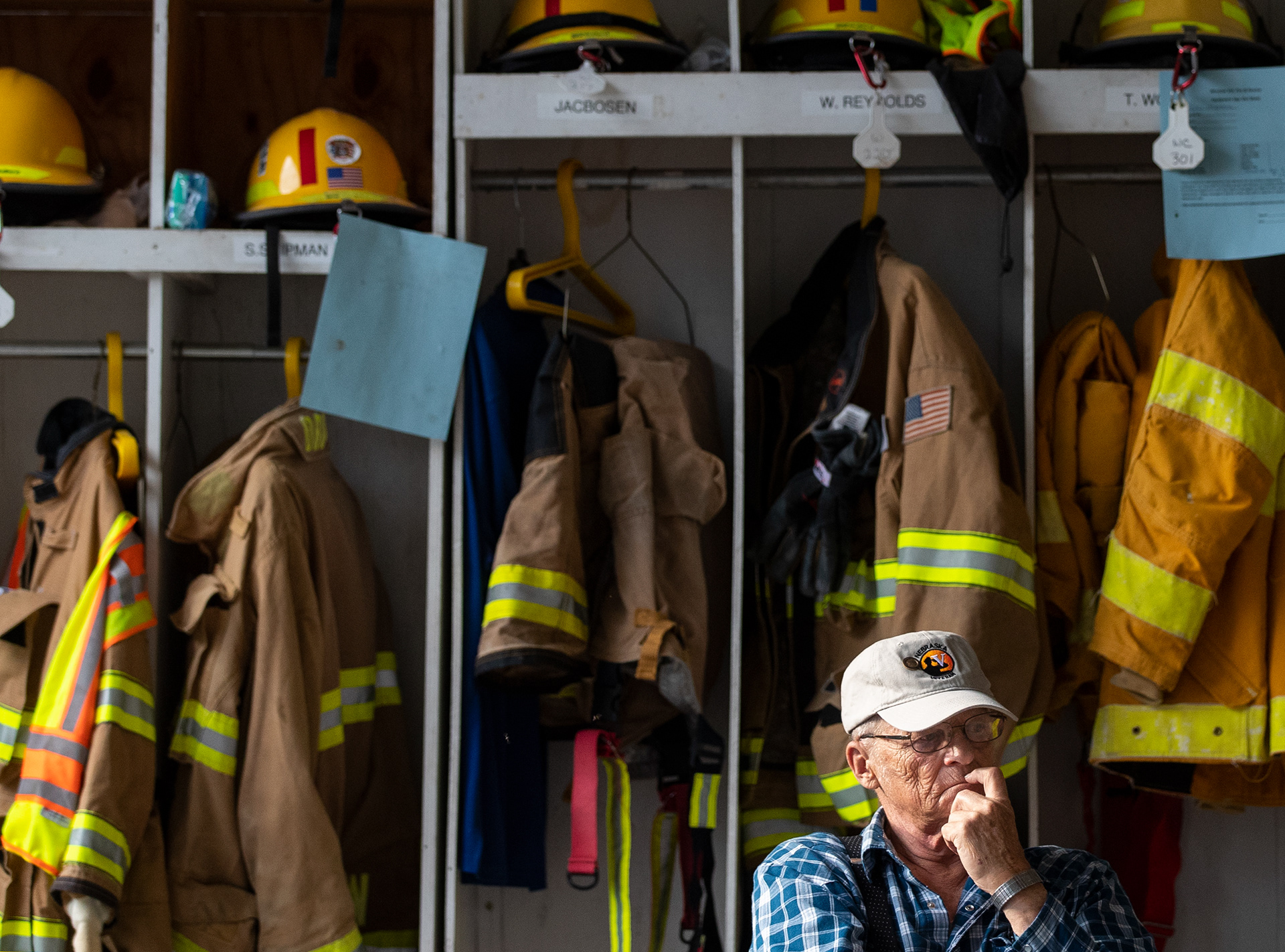 Winslow resident Ed Nelson waits for a village meeting to begin inside Winslow's fire station on Thursday, Aug. 8, 2019, in Winslow, Nebraska. Nelson has lived in Winslow since 2005 and said he plans to keep his options open but would move his home to higher ground if the rest of the village will too.